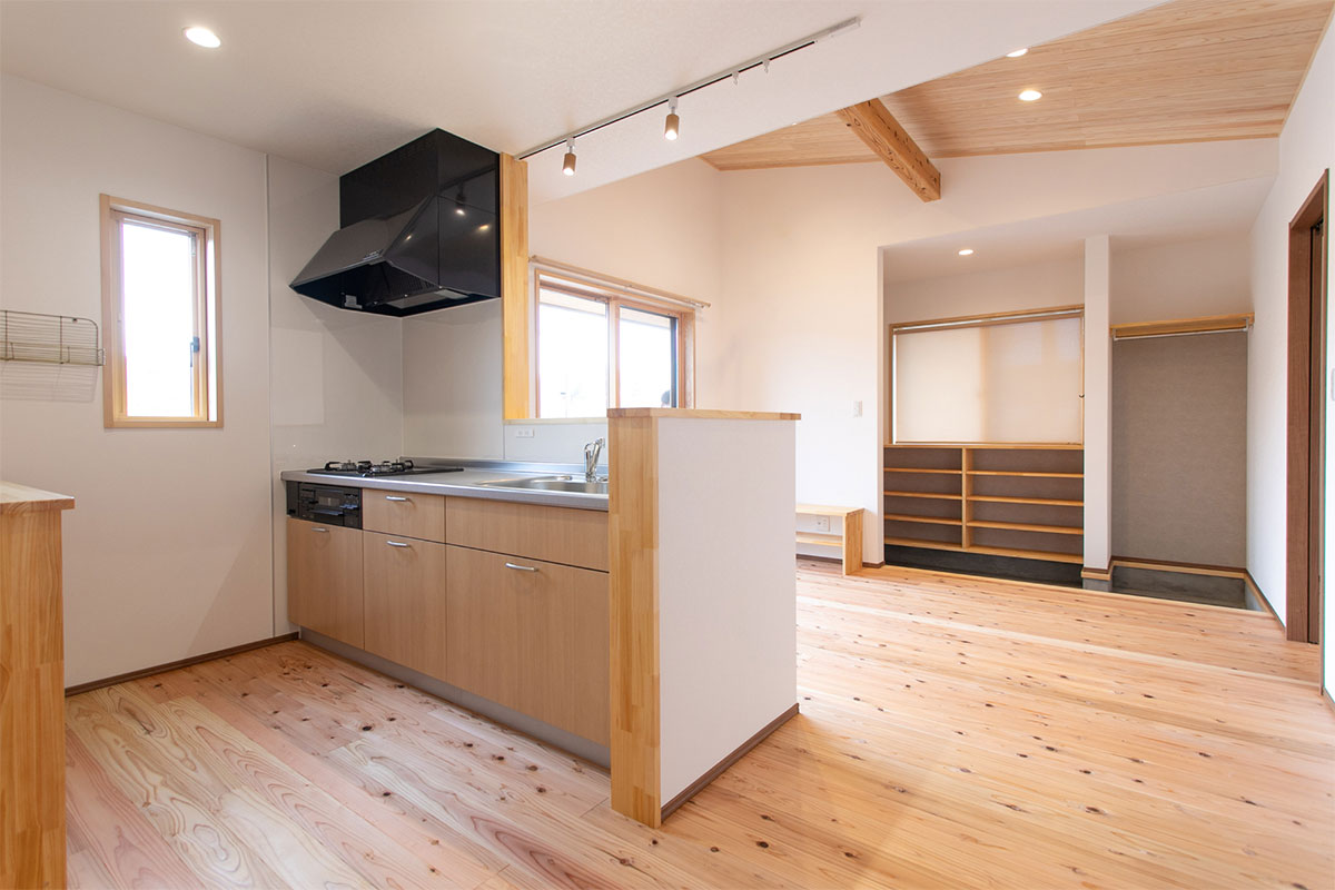 お客様のライフプランと大工の知恵、そして設計士のセンスのマリアージュで完成した#リーズナブルな平家住宅。間取りや素材選びに合理性と使いやすさ追求した大人二人暮らし仕様です。手刻みの基本骨格ベースに、外壁には母屋と色調をそろえた金属サイディングでローメンテナンスを、内装では節材や集積材を活用して、コストを抑えつつ木質系らしい温もりのある空間を実現しています。お客様のご要望に応じて進化する「大工とつくる家」、それが#あたらしい日本家屋です。
